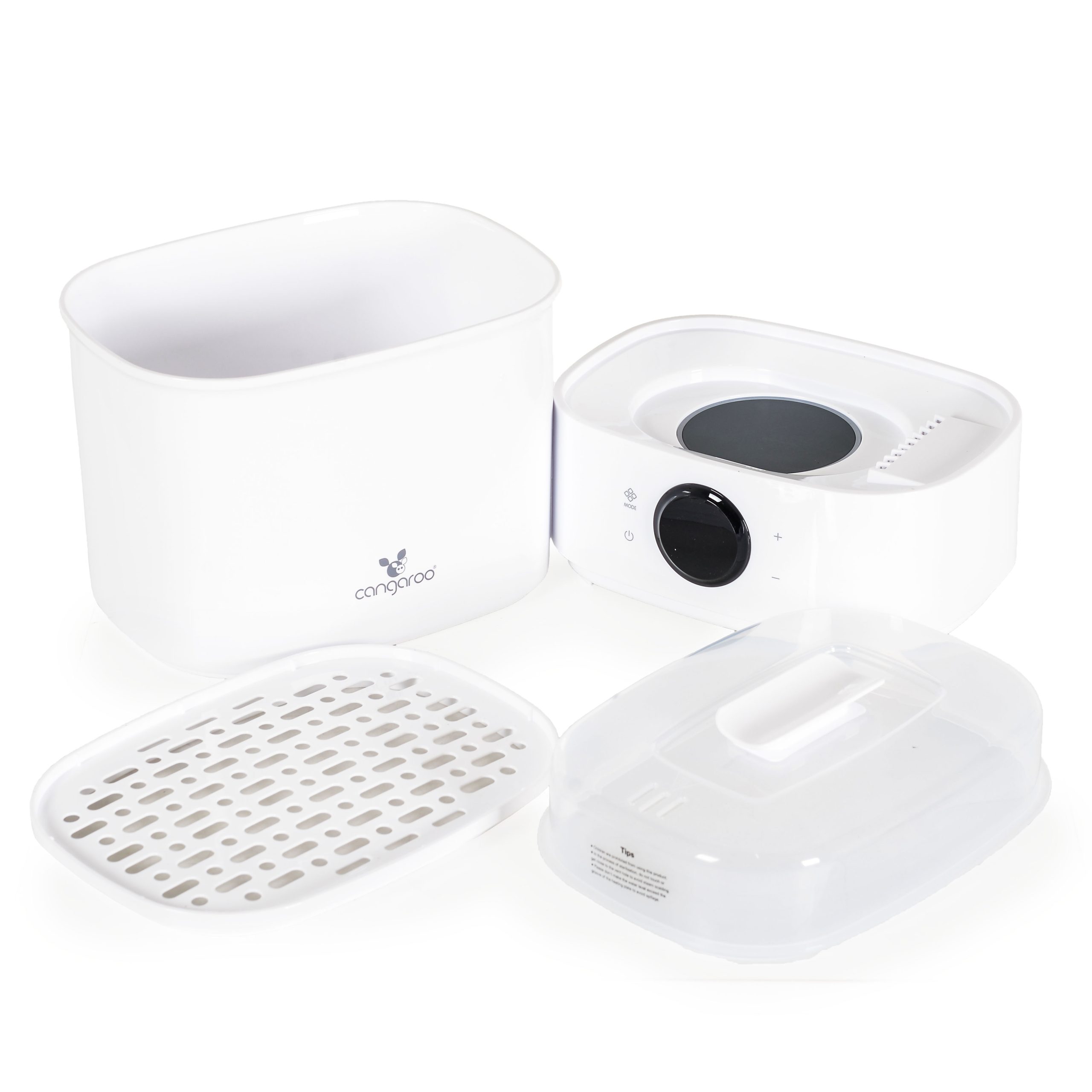Simultaneous Sterilization of baby bottles and accessories – nipples, soothers, spoons; Modes: sterilization; drying; combined mode – sterilization + drying; Buttons to adjust the time fo sterilization or drying; Capacity – up to 6 bootles with standard neck; Included accessories: bottle/ accessories clip; LCD Display; Power supply via cable (cord); ; Power: Sterilization – 500 W, Drying– 150W; Method of Control: touchscreen panel