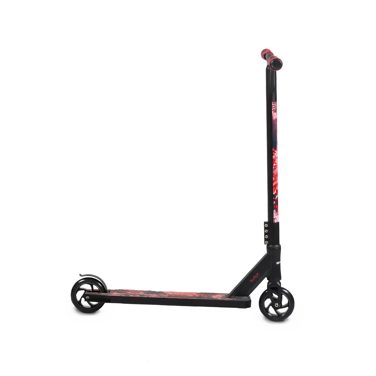 Stunt scooter with aluminum deck size 500-110mm; Handlebar h=57cm; w=52cm; TPR two color grips 14cm ; HIC compression, 4bolt clamp; PU wheel 110mm alu core; ABEC-9; 100kg max weight; 100 kg max weight
