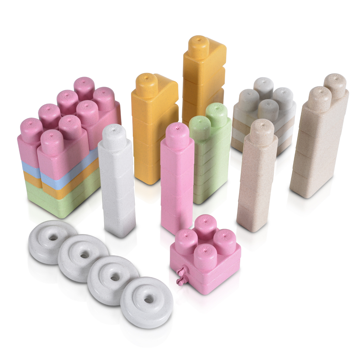 Mijoy blocks series is a latest eco friendly toy block series to encourage the world to use less plastic. There are tons of rice husks waste worldwide and this is an opportunity to have a technology to transform these waste into a raw material to replace plastics. MIJOY blocks come in a series of trendy pastel color and different shapes. MIJOY blocks can be identified from its unique surface design where you can see the raw material blends into the plastics. 18+ months.