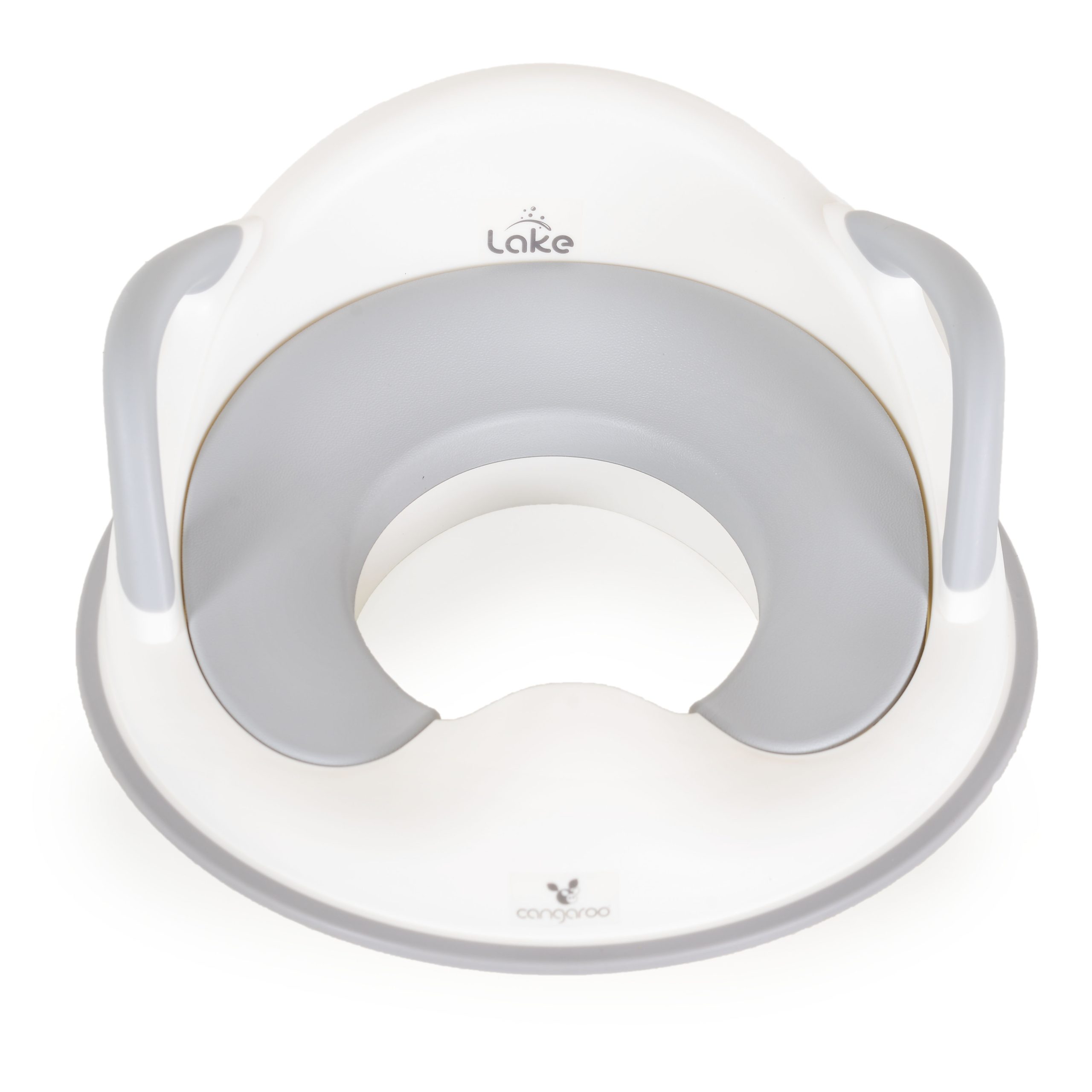 We present the Lake toilet seat adapter – the perfect solution for a smooth transition from potty to toilet. With its comfortable ergonomic shape, PU seat, and secure attachment, this adapter provides maximum safety and comfort for your child. The backrest supports proper posture, while the built-in handles ensure safety when sitting down and standing up. Its universal design is compatible with all standard toilet bowls, and its easy cleaning and compact storage make it an indispensable helper in the bathroom. Made from high-quality and safe materials, the Lake is suitable for children over 36 months.