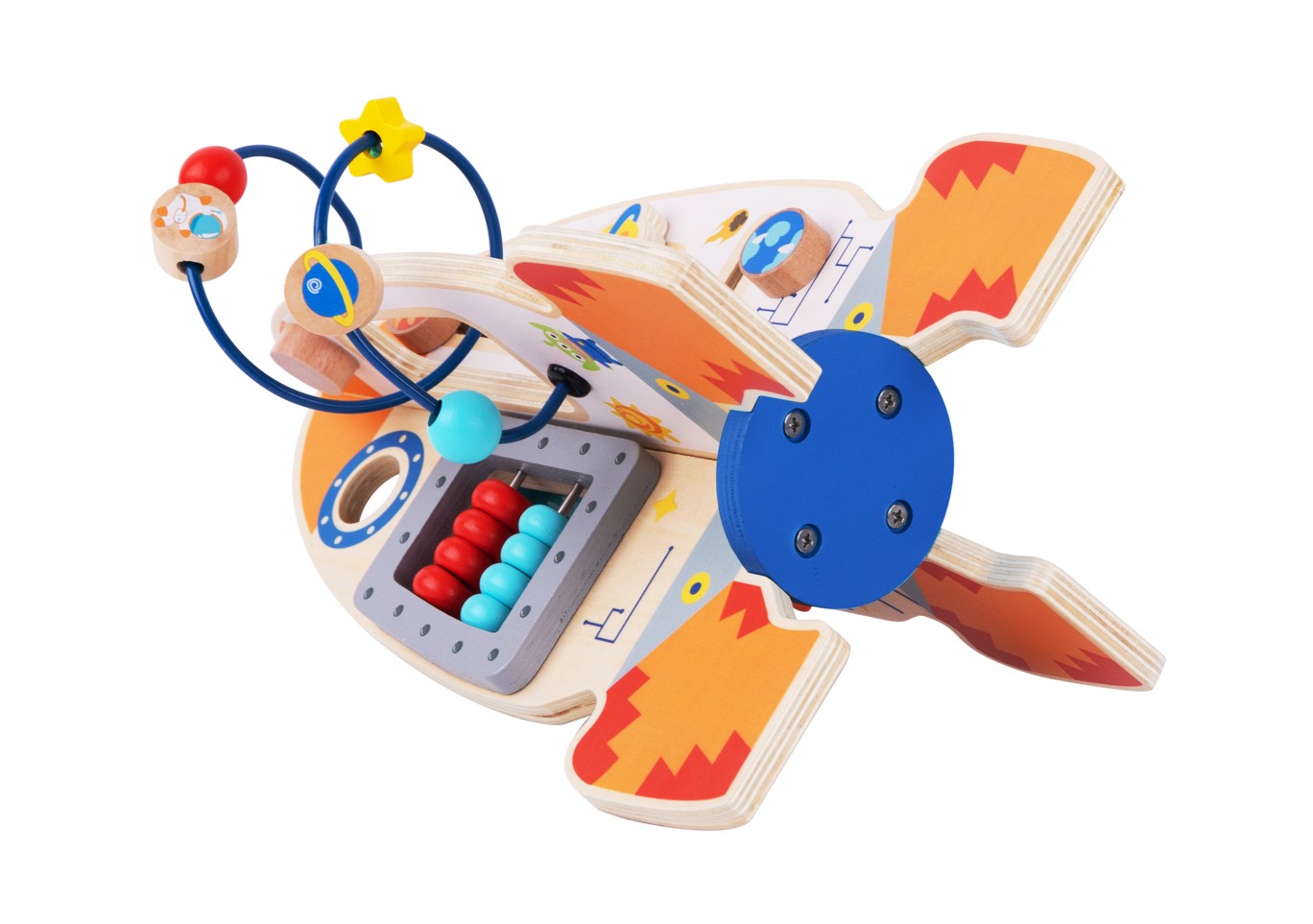 Our rocket activity cube Includes bead maze, shape matching, abacus, and rotating gear. Compared with normal square shapes, unique rocket shape is more attractive and it takes babies` thoughts to the mysterious space. This wonderful busy toy promotes toddlers` hand-eye coordination, fine motor, primary numeracy, shape matching, and sense ability development. Made of high quality wood, the surface is covered with non-toxic water-based paint, and smoothly polished edges, which very safe for small children. 24m+