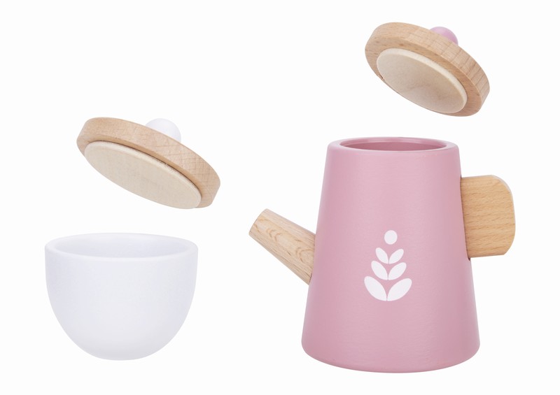 Have a cup of tea with your child! The realistic wooden set in lovely pastel colors and lifelike shapes is a perfect addition to any children`s room or children`s kitchen. Crafted with attention to detail, it will have kids acting out different scenarios for hours of fun. Through play, children develop their social skills and fine motor skills. The set contains a teapot, cups, tray, tea bags, spoons, sugar bowl and sweets.