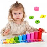 Wooden counting string. Each number corresponds to a color and the corresponding number of circles. The goal is for the child to count by stringing the circles. Thus, at the same time, he will learn to count, he will learn the numbers from 0 to 9 and colors.
