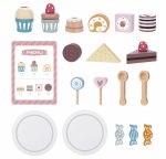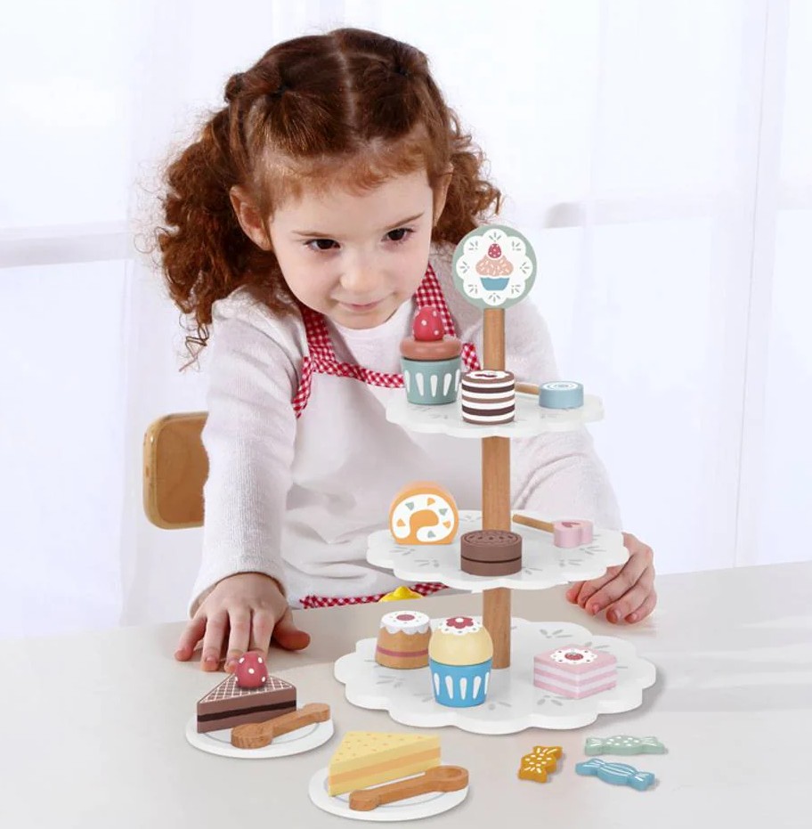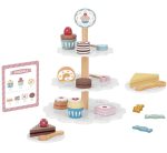 A beautiful wooden set with sweets. The set contains: stand, menu, sweets, serving utensils. The set is a great addition to any children`s room or children`s kitchen. The child can learn while having fun. Through role-playing, children develop their social, motor and communication skills.