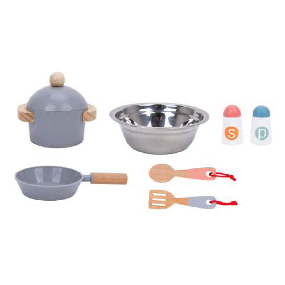 The wooden play kitchen set ignites the culinary imagination of young chefs with its charming design and realistic accessories. This set features an oven, cooktop and sink, allowing kids to engage in imaginative cooking adventures. The set offers wooden and plastic kitchen utensils, a pot and a pan, providing novice cooks with everything they need to prepare delicious meals.