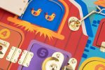 The wooden latches board is an entertaining and educational activity play board that helps kids build dexterity as they navigate latches that hook, snap, click, and slide. This type of hands-on toys for preschoolers are designed to help younger children build fine and gross motor skills, while also discovering vibrant colors, numbers, animals, and more. 36 months +