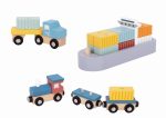 This complete set includes a beautifully crafted wooden crane as the centerpiece, ready to load and unload cargo. Next to the crane you`ll find a miniature train, truck, track and containers, all designed to create a captivating port scene that ignites the imagination. Whether it`s loading containers, sending the train on its way, or delivering cargo with a truck, this set invites creativity and storytelling, making it a must-have addition to any playroom.