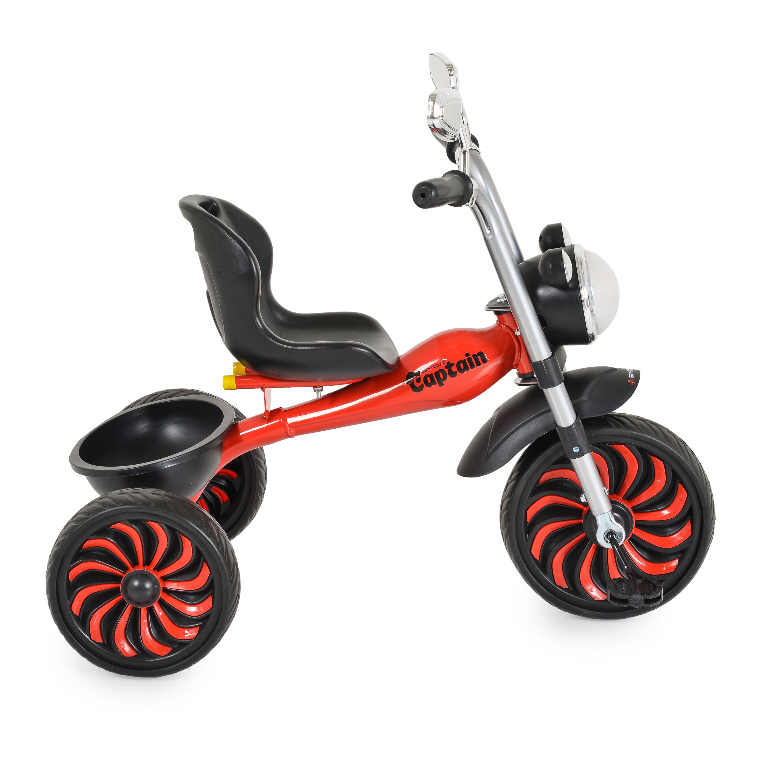 Suitable from 3 years+ up to 25 kg. It features an ergonomic, wide seat with backrest for maximum comfort and offers 2 seat positions for added convenience. The tricycle includes a musical function and lights for extra fun, along with decorative mirrors for a stylish touch. Ergonomic handlebars with anti-slip coating ensure a secure grip, while the rear basket is perfect for accessories and toys. This tricycle helps develop coordination, balance, and motor skills in your child. Requires 3 x AA 1.5V batteries (not included)