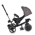 For children from 1 to 5 years of age and with maximum weight of 25 kg. PU wheels – front 12 inch, rear – 10 inch. Front wheel with free wheel function – the front wheel can move feely, but the pedals are fixed and cannot control the wheel. Adjustable parent pushbar, controling the direction of movement of the front wheel. Foldable handlebar; With 2 footrests – one for smaller children and one for bigger children. Adjustable canopy; Rotating seat in 360°; Backrest – reclinable to several laying positions; With soft safety bar; removable seat cushion, 3-point seat belts, 2 rear brakes.