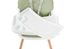 The Gelato 2-in-1 highchair features a sleek, stylish design and transforms into a low feeding and seating chair. It includes a double feeding tray with two-position adjustment and full removal option, cup holder, and footrest. The eco-leather upholstery is soft, durable, and easy to clean. The wooden legs have anti-slip tips for stability, and a 5-point harness ensures child safety. Suitable for children up to 3 years or 15 kg, the chair meets European standard EN 14988:2017+A1:2020.