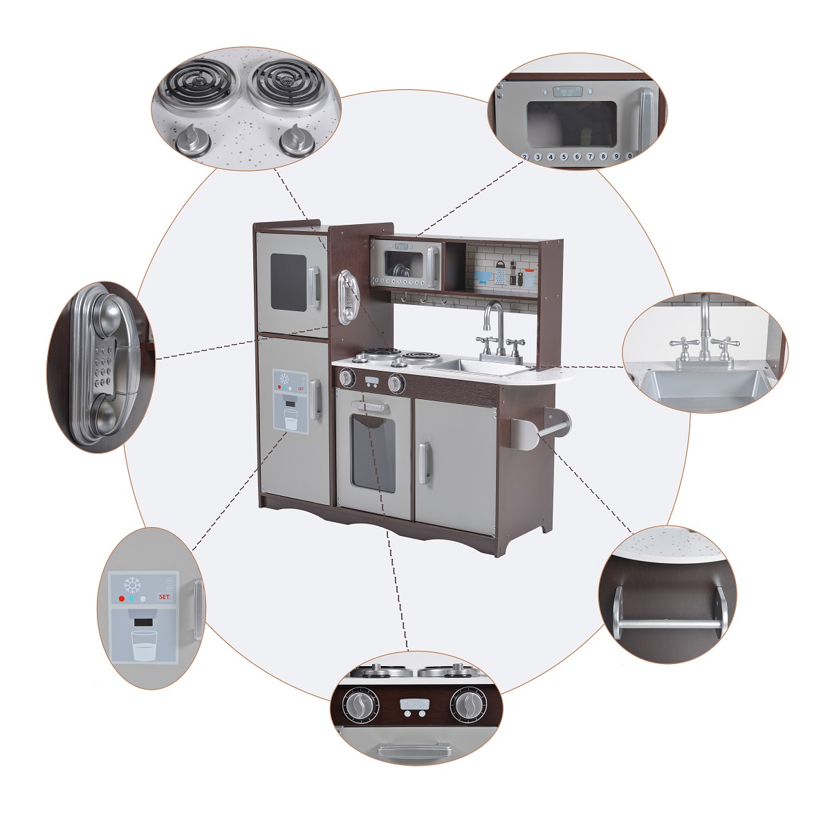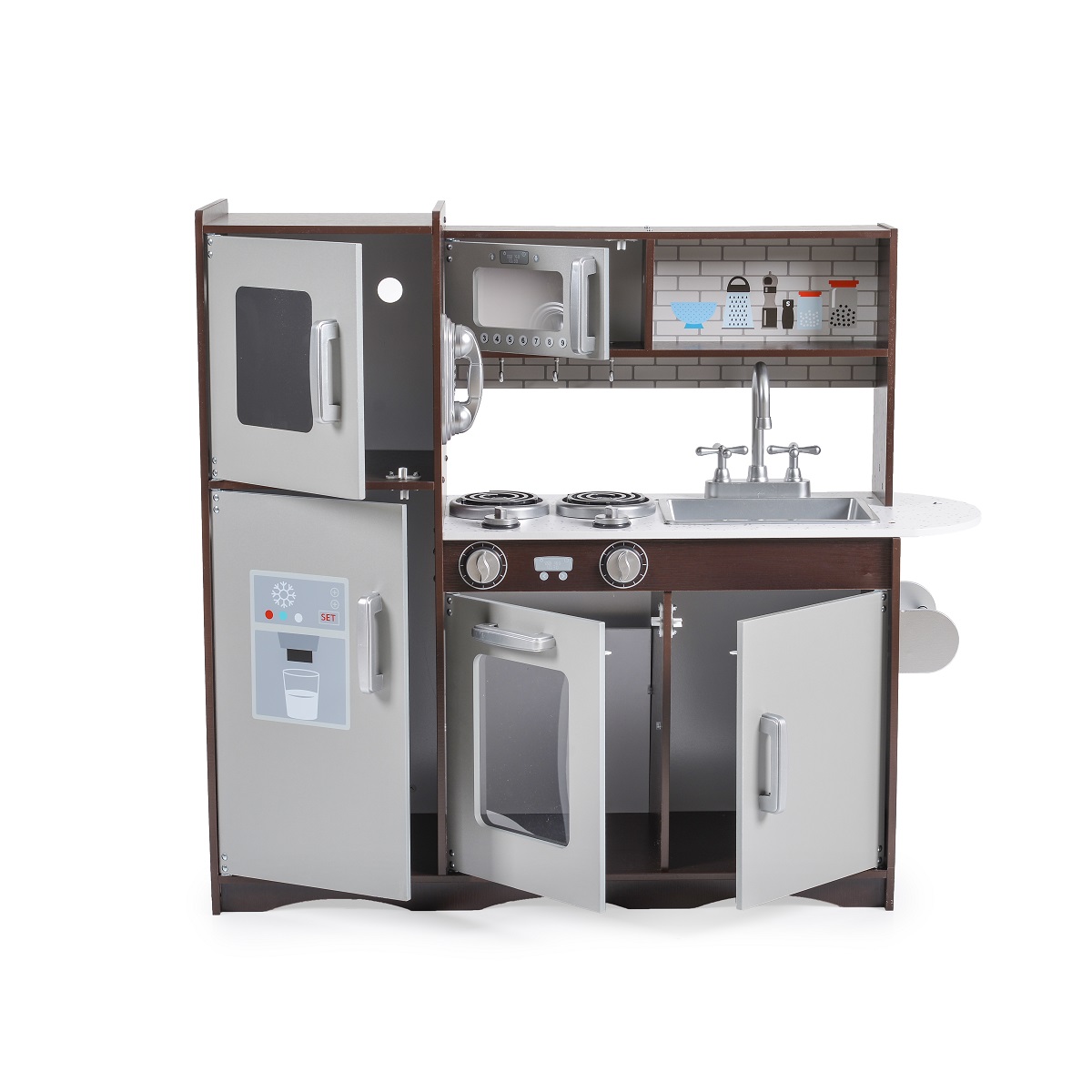 Wooden kitchen Smart has a refridgerator, microwave oven, oven, stoves, sink, telephone and hanger. This toy kitchen can offer hours of funtime to your young ones.